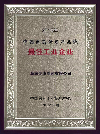 海南靈康制藥有限公司榮獲“2015年中國醫(yī)藥研發(fā)產(chǎn)品線最佳工業(yè)企業(yè)”